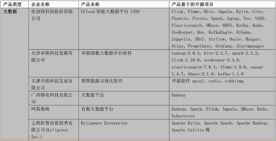 表1 开源供应商产品列表【大数据】